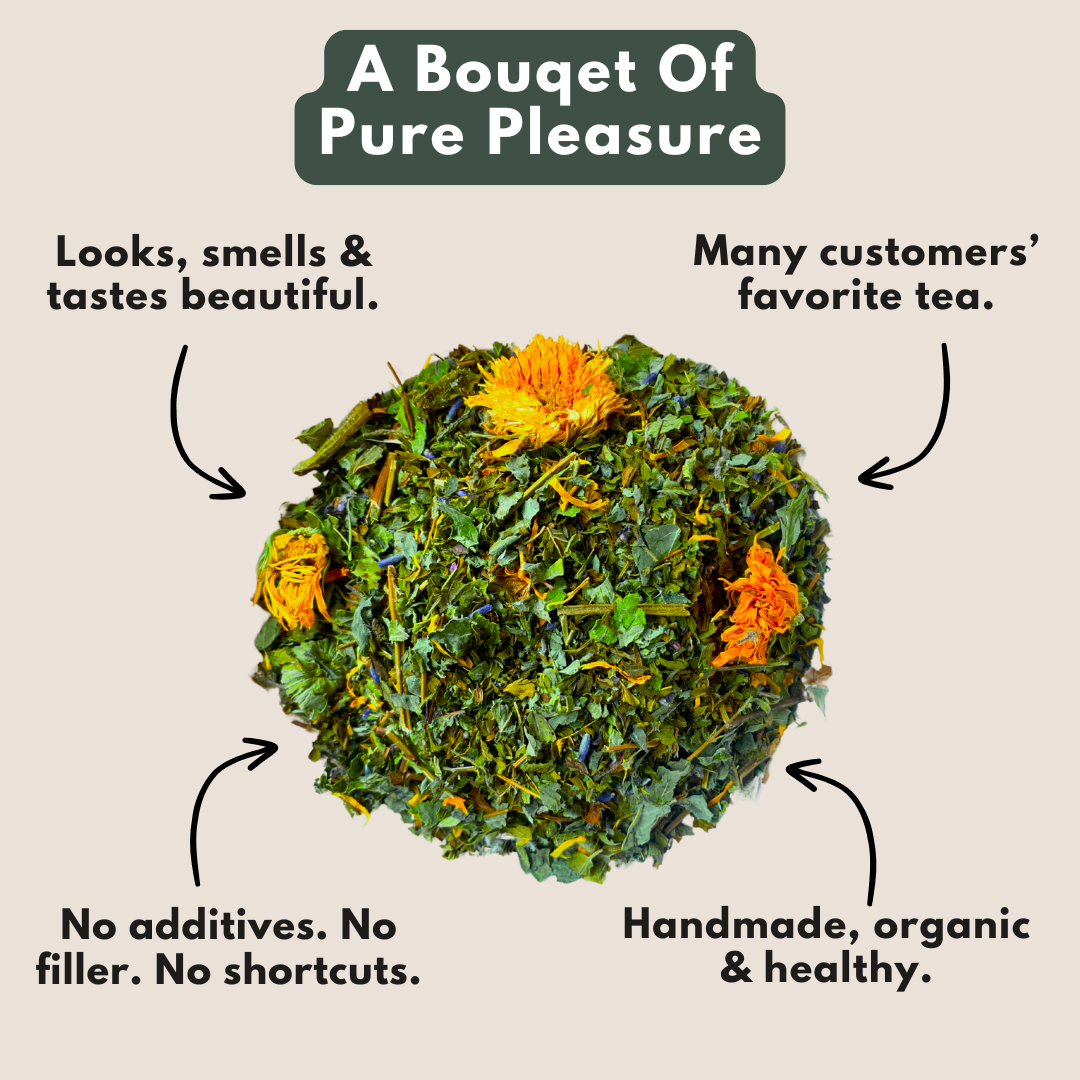 All plants are gentle-dried on site within minutes of harvest, then blended by hand.
