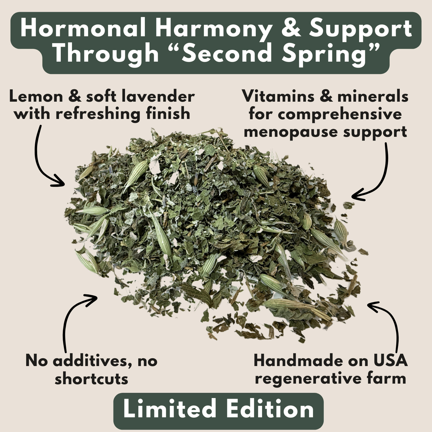 It opens with the bright, aromatic perfume of Lavender and Lemon Balm, grounded by the savory notes of Nettle and Raspberry Leaf.