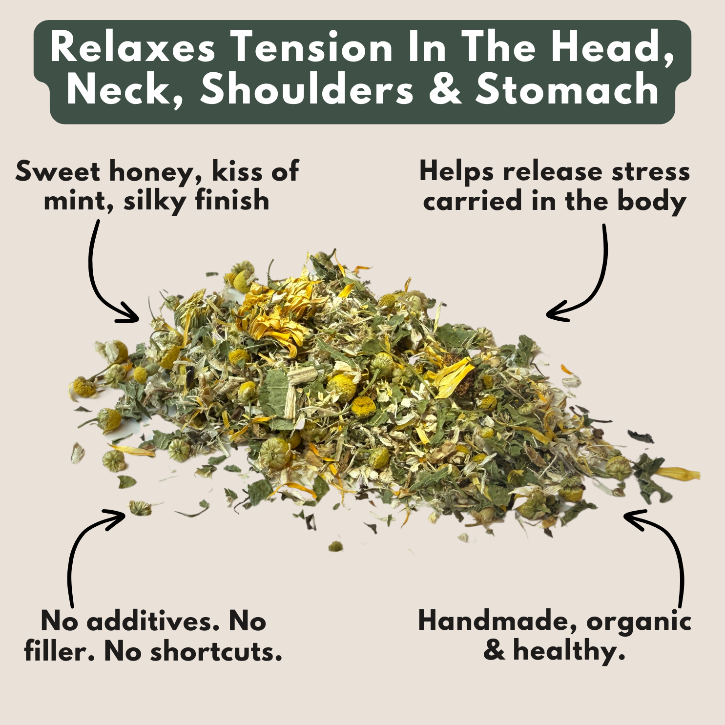 This soothing blend starts with the comforting, honey-like sweetness of Chamomile flowers.